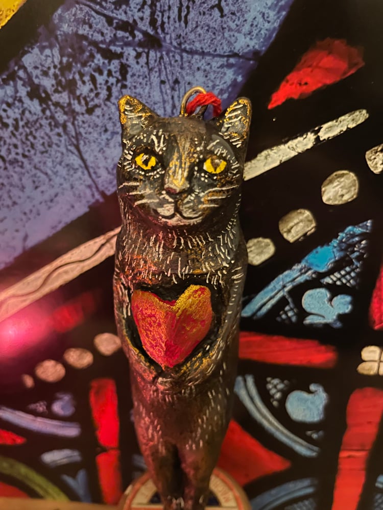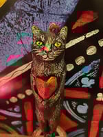 Made from paper clay and painted with acrylic paints. Buffed with a gold lustre and sealed with a acrylic varnish